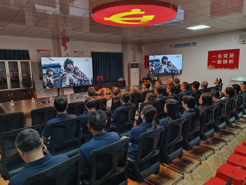 9月3日上午,广州市蓝天高级技工学校组织全体师生汇聚学校礼堂、党员活动中心和各班教室等场所,集中观看“纪念中国人民抗日战争暨世界反法西斯战争胜利80周年大会”,共同见证国家盛典,凝聚爱国情怀与责任担当。
