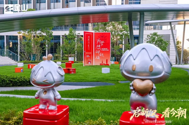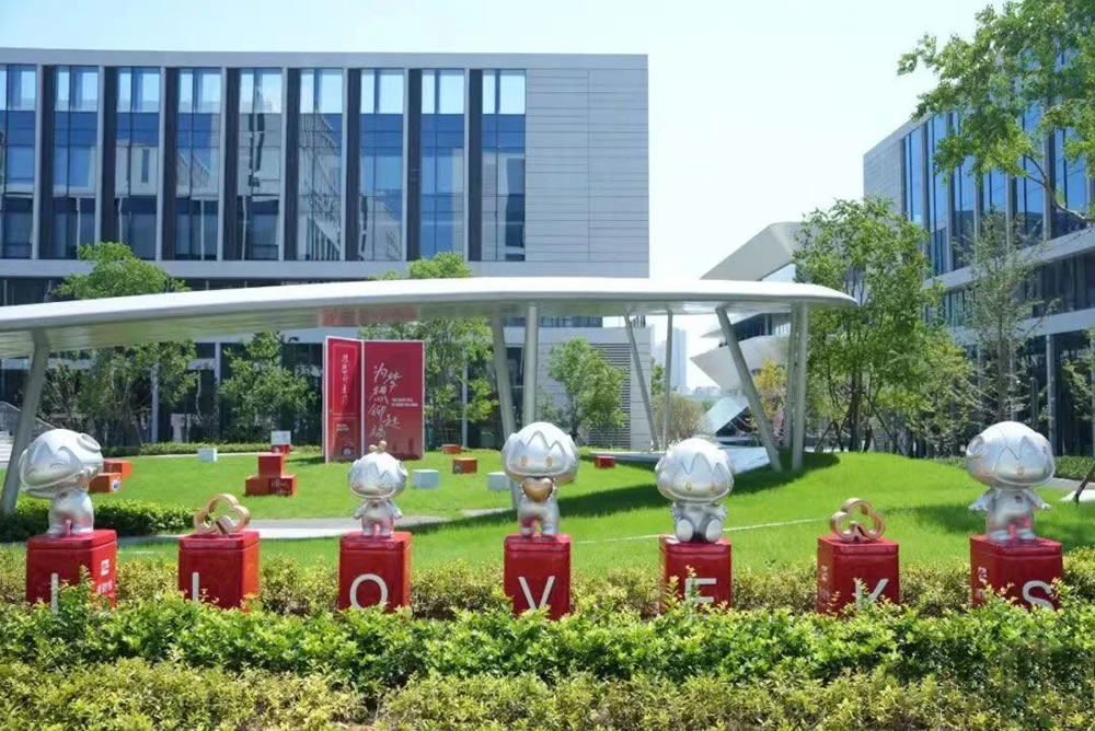在金山软件园的设计项目中,林楚君所在的设计团队主要参与了办公空间、休闲区域和户外园林雕塑的设计工作。“我们主要参与了园区的软装搭配,还有户外园林雕塑设计,包括一些橱窗的设计。里面有一套‘小K雕塑’就是我想到的。也得到了武汉金山集团总部的认可,被采纳后顺利落地。然后到雷军开园那天,看到自己的设计从效果图变成实景,那种成就感真的无法用言语表达!”