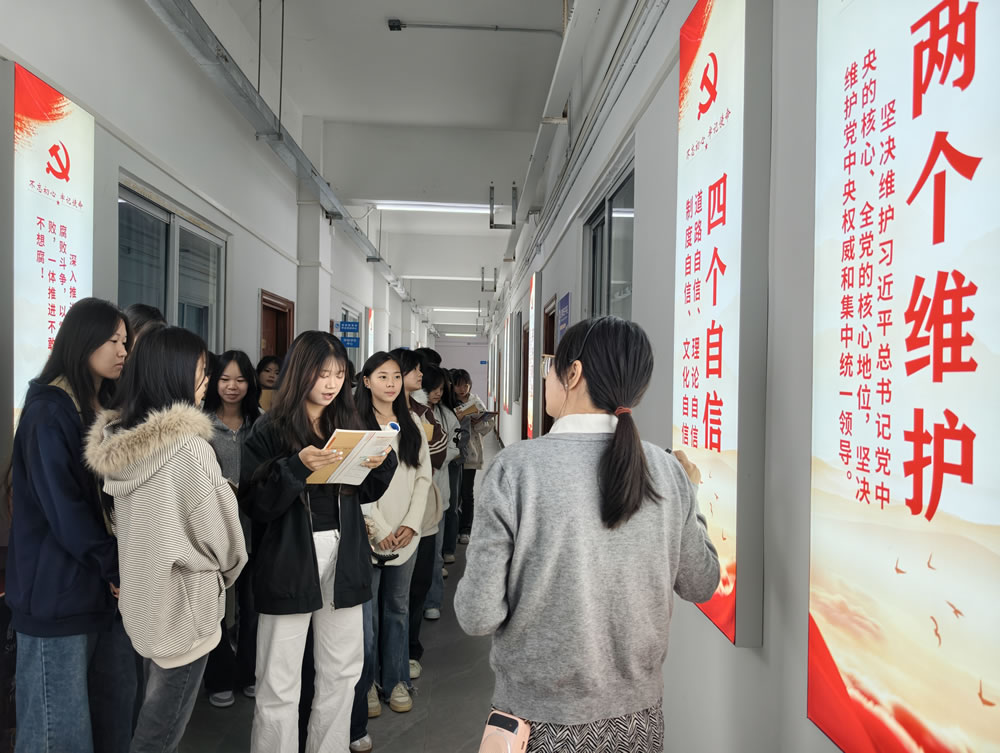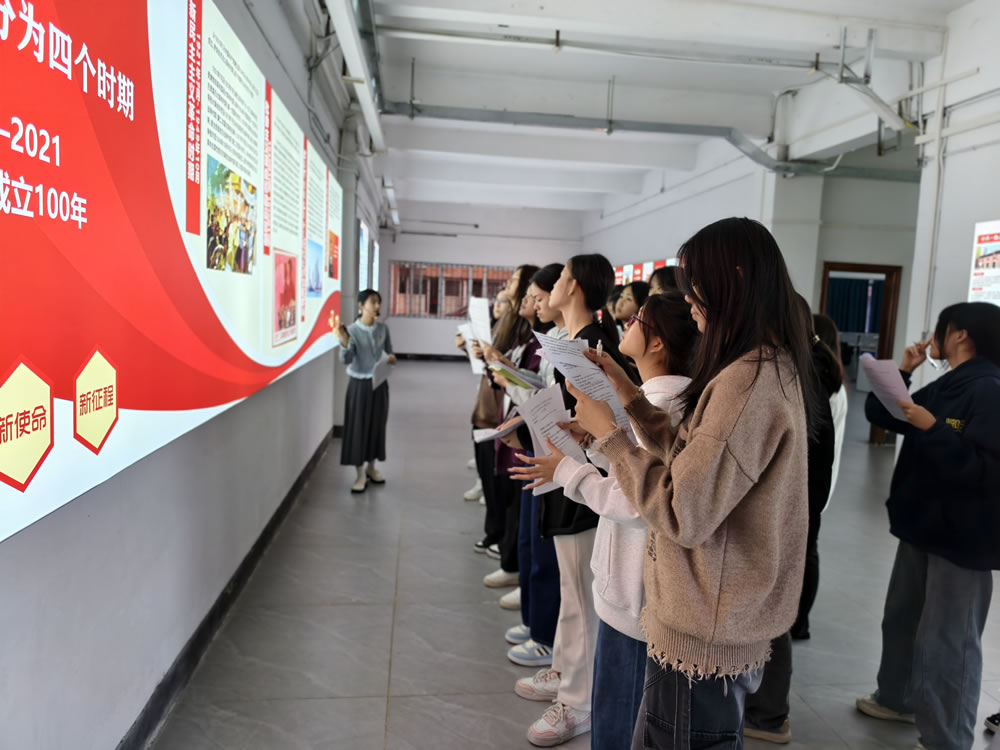 陈宇萍老师则结合党史任务单,引导学生在长廊中探寻党的领导力量,让大家从专业视角出发,思考如何将红色基因融入未来职业发展,让思政教育以更生动、更有趣的形式落地见效。