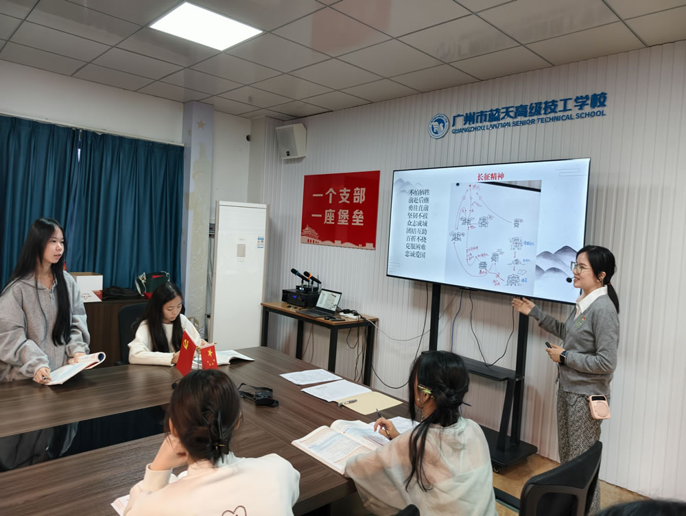 近日,广州市蓝天高级技工学校公共教研室将思政课堂搬进党员活动中心(思政教育基地),谢鼎颖、陈宇萍两位老师以《革命薪火传精神,文化长河润青春》《穿越党史长廊,探寻领导力量》为主题,打造了一场“行走 + 实践”的沉浸式思政课,让理论学习走出课本,让红色教育入脑入心。