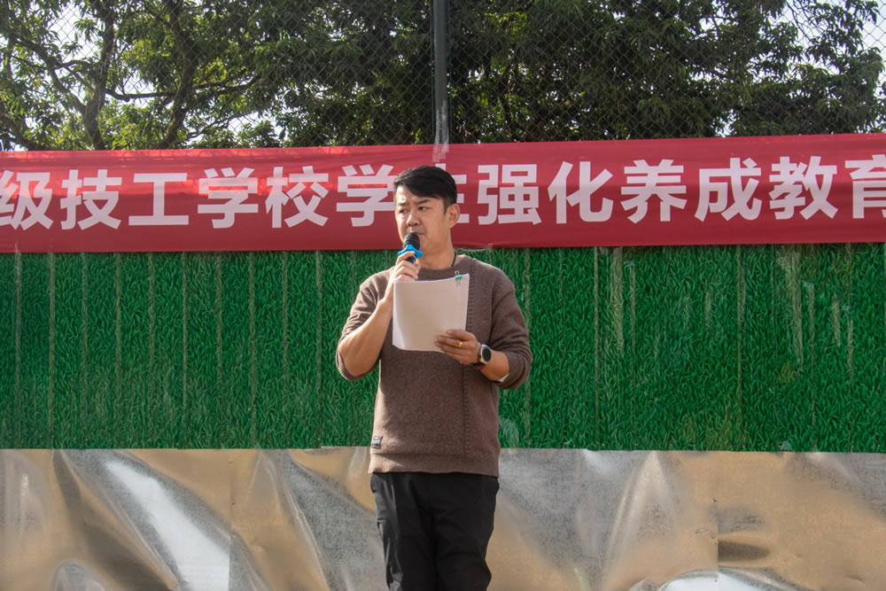 常务副校长丁海洋以《严明纪律树新风,强化规范促成长》为题作动员讲话。他指出,“立德树人”是教育根本任务,规矩是“德”之根基,秩序是“树人”之土壤。学校不仅要传授谋生技能,更要锤炼学生终身受益的职业素养与品格,而这离不开纪律严明、风气清正的校园环境。他强调,此次活动周是校风学风的全面强化,也是学生行为习惯的集中检验,希望全体蓝天学子以饱满的精神状态,从学风建设到网络言行等方面,全面提升个人素养,共同营造让家长放心、让自己自豪的校园氛围。