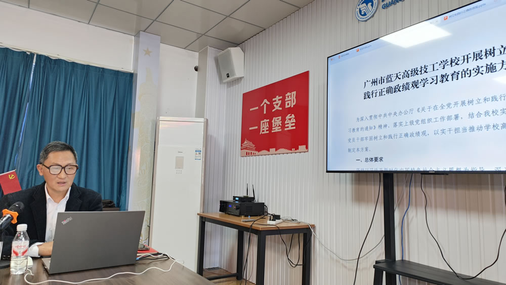 3月18日,广州市蓝天高级技工学校党总支召开会议,认真学习习近平总书记关于树立和践行正确政绩观的重要论述,传达学习广州市技工学校教育警示会议核心精神,启动部署树立和践行正确政绩观学习教育各项工作。学校全体党员、副科级以上干部参加会议。党总支书记罗来柏作动员部署讲话并开展专题党课。