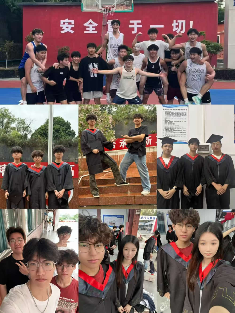 下午两点,拍摄结束,阳光穿透云层。同学们在教学楼台阶、操场跑道、宿舍小径前驻足拍照,那些熬夜赶作业、社团招新、抢麻辣烫的日常,都成了舍不得的珍贵回忆。有人红了眼,有人约着常联系,横幅上“青春不散场,梦想正起航”格外醒目。