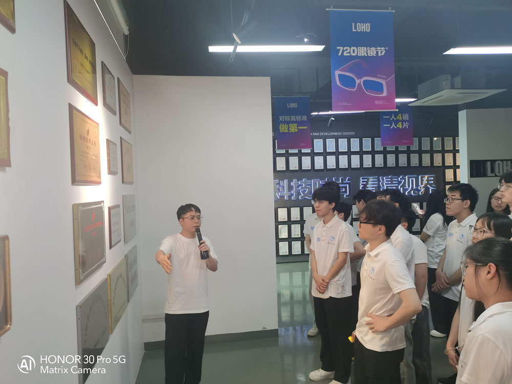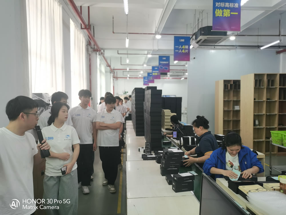 下午的沉浸式参观,让大家大开眼界。在LOHO眼镜展厅,同学们直观感受时尚与专业兼备的产品设计;走进加工生产线,现代化、标准化的工艺流程,让大家真切体会到行业的专业度与科技感;在仓储区域、设计部门,同学们完整了解一副眼镜从设计、生产到入库的全过程,对专业产业链有了更立体的认知。