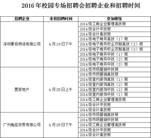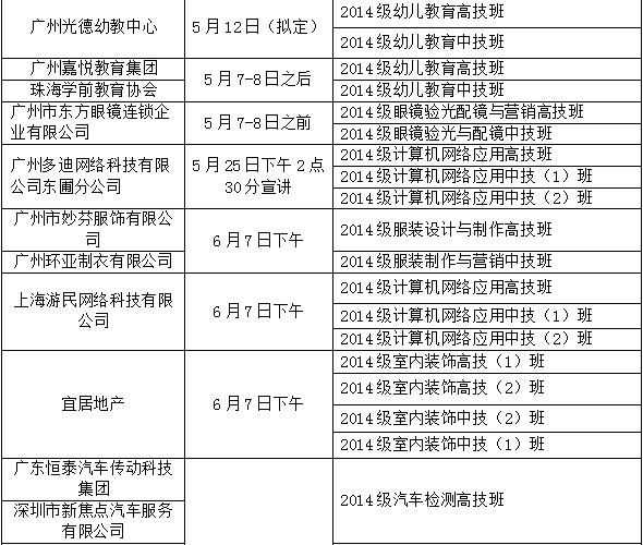 按教学计划确定的安排,各系、各专业、各班级的来校招聘企业及招聘时间如下: