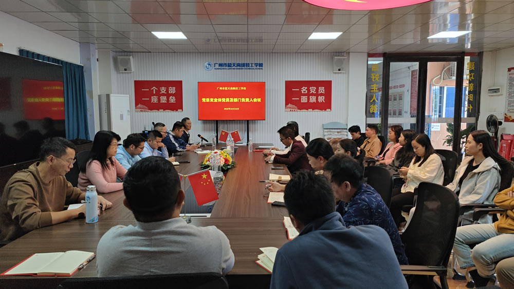 10月24日下午,广州市蓝天高级技工学校召开党总支全体党员及部门负责人会议,传达学习党的二十届四中全会精神。学校各部门负责人、全体党员及入党积极分子参会,党总支书记罗来柏主持会议。