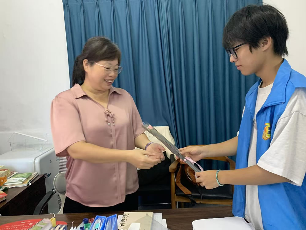 这些年轻的身影没有停留在某一个角落。从实训场地到教学楼,从办公室到校道,他们像是校园中的“芬芳信使”,把敬意与爱意精准投递。有老师感动地说:“一早推开门就看到孩子们的笑脸和鲜花,一整天的能量瞬间满格!”