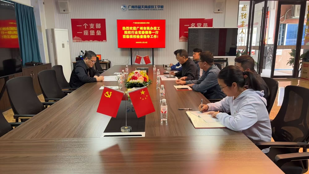 罗来柏书记重点介绍了学校组织党员干部深入学习中央八项规定精神、党的二十届四中全会精神等方面的情况,展现了学校在思想建设与作风建设上的扎实举措。韩庆旗同志作为广州市民办技工院校行业党委联系我校党组织的直接联系人,认真听取汇报,对我校党建工作给予肯定,特别点赞学校助力“百千万工程”的实践。学校与增城区中新镇南池村党支部开展党建共建,在组织师生为该村开展“美丽乡村-彩绘墙”项目中积极作为,为乡村振兴贡献力量这一做法极具典型示范意义。