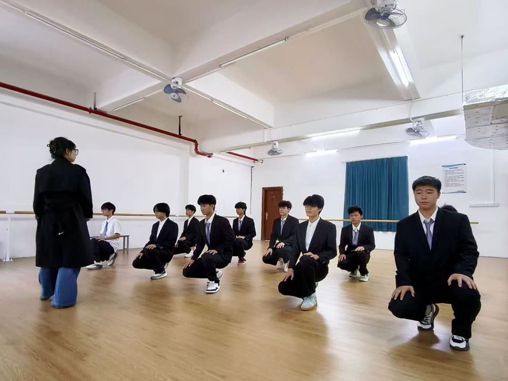 礼仪教室里,民航服务礼仪培训有序开展,导师通过“示范→纠错→分组练习”模式,帮学子们夯实职业基本功。站姿要求沉肩收腹,双脚呈30°夹角;行走步幅控制在30厘米;导师逐组纠正含胸、抖腿等问题;坐姿强调“端而不板”,轻缓落座、坐满椅面 2/3,双腿并拢不翘腿,与旅客交流时侧身而坐;蹲姿追求“稳而优雅”,双脚前后错开,前腿屈膝、后腿半跪,膝盖不超脚尖,及时纠正不规范动作。