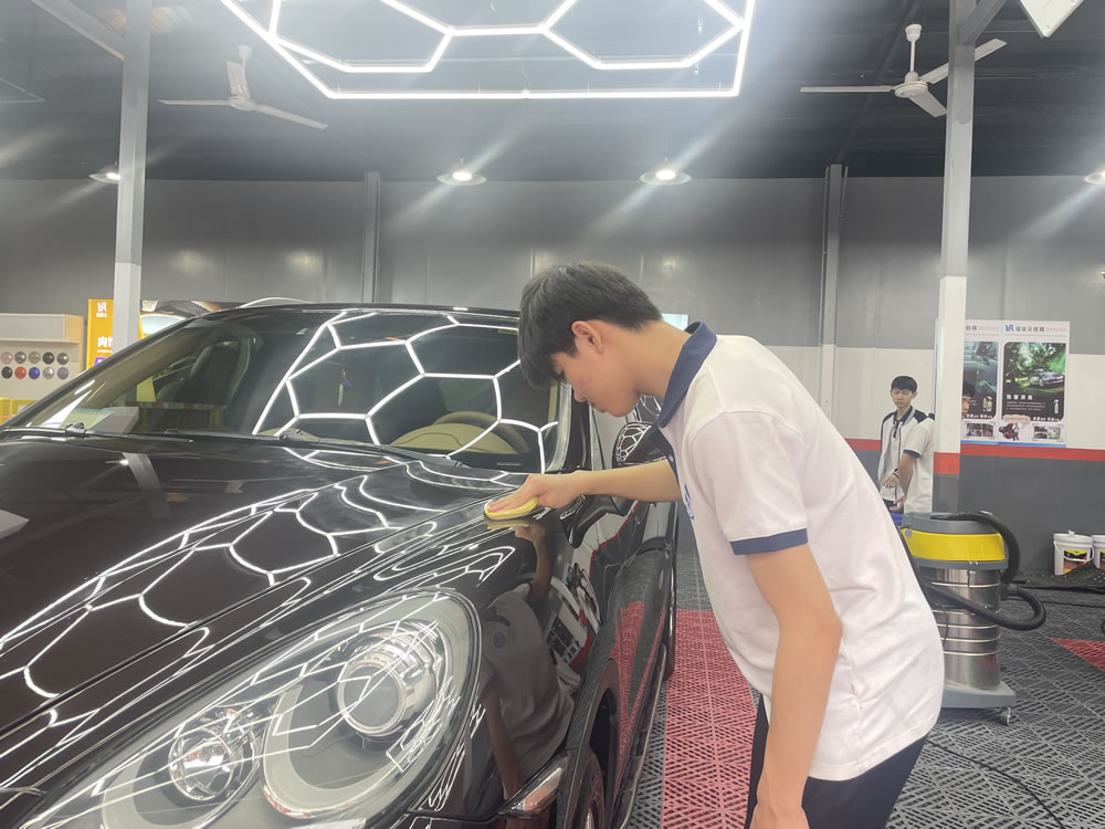 汽车美容课程涵盖基础清洁到漆面修复的9大模块、127 项关键技术点,即便是最基础的漆面清洁,也细化出预洗液酸碱度选择、水流角度控制等11个细节要点。这不是教学团队“较真”,而是因为他们深知高技能人才的培养离不开对极致的追求。