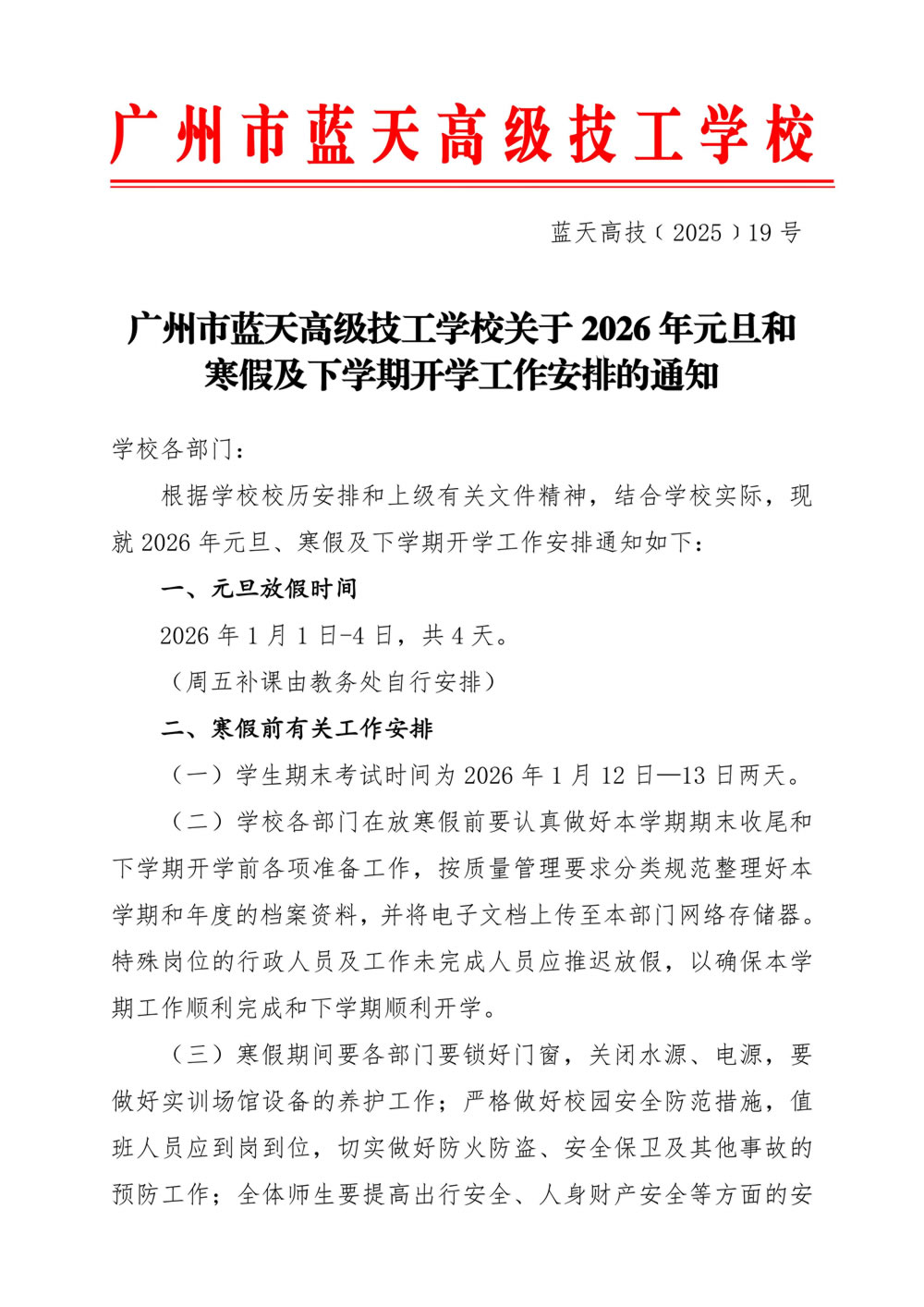 关于2026年元旦和寒假及下学期开学工作安排的通知